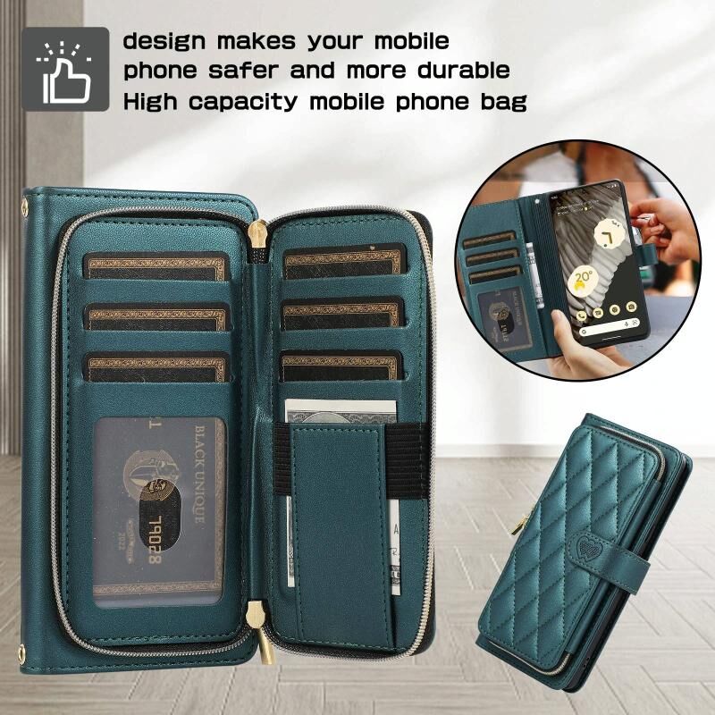Για το Google Pixel 8 Rhombic πλήρη φερμουάρ πορτοφόλι δερμάτινη θήκη τηλεφώνου (πράσινο)