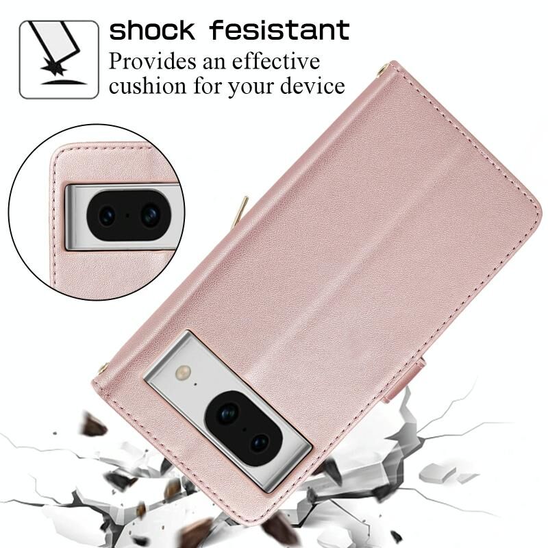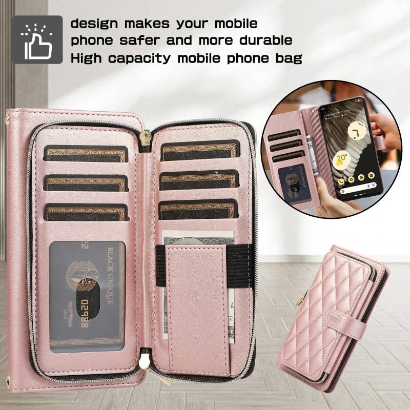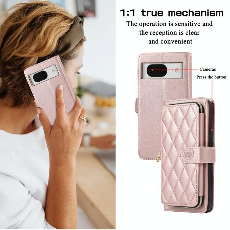Για το Google Pixel 8 Ρομβοειδής πλήρης φερμουάρ πορτοφόλι δερμάτινη θήκη τηλεφώνου (ροζ χρυσό)