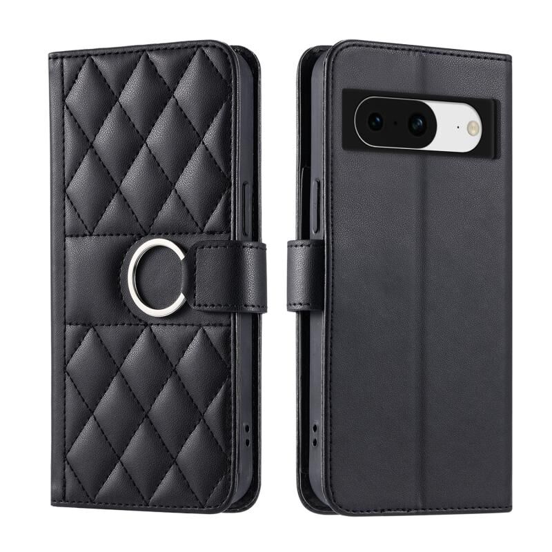 For Google Pixel 8 Ring Buckle Rhombic Leather Phone Case(Black)