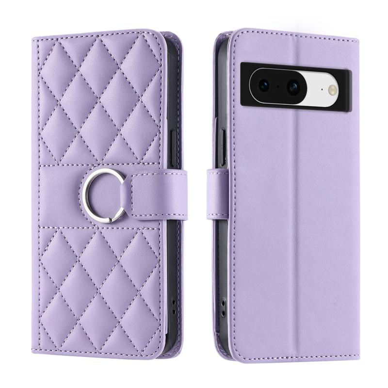 For Google Pixel 8 Ring Buckle Rhombic Leather Phone Case(Purple)