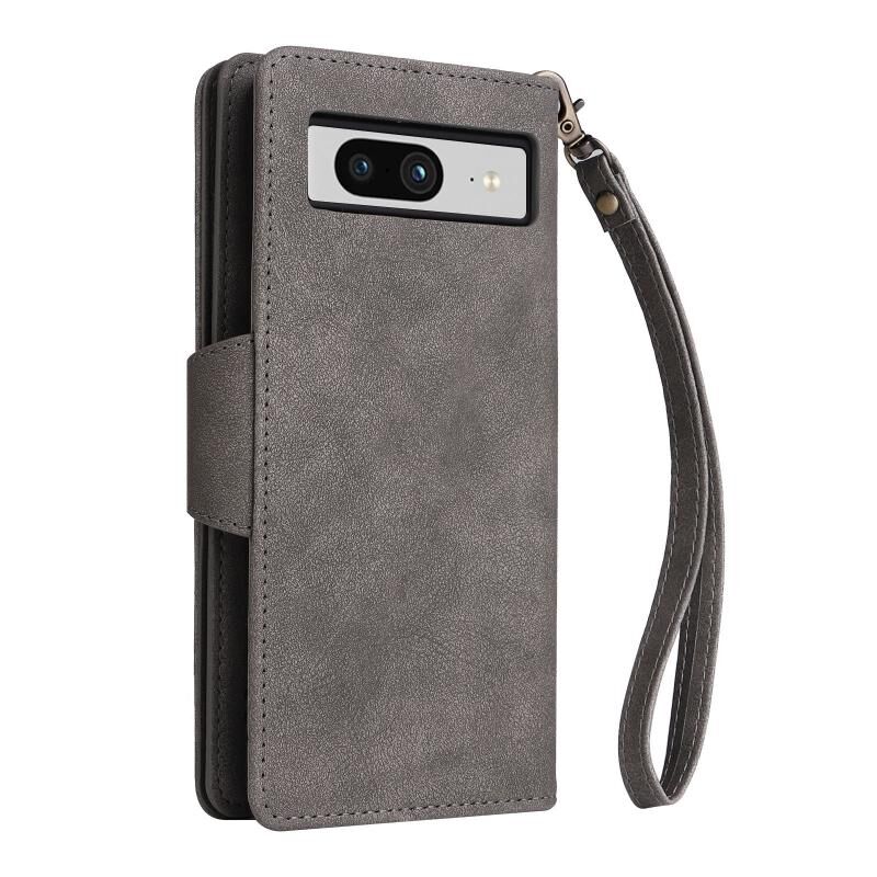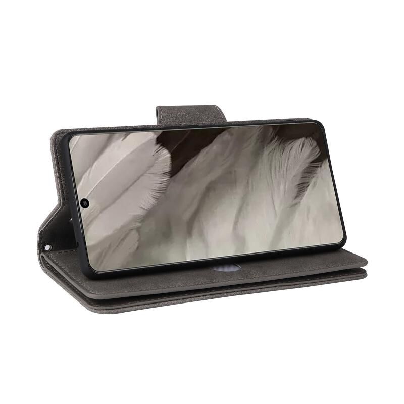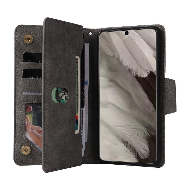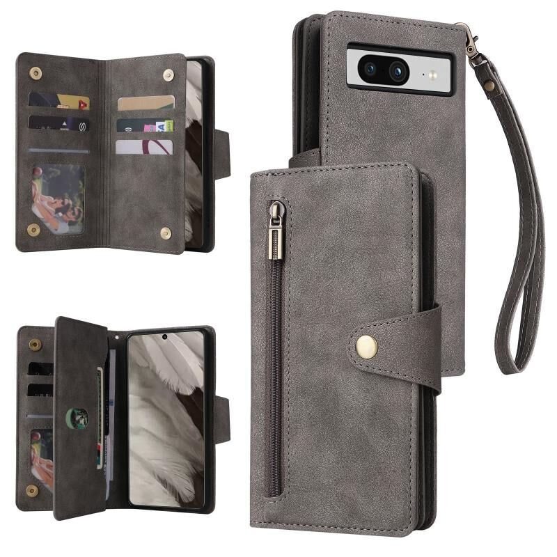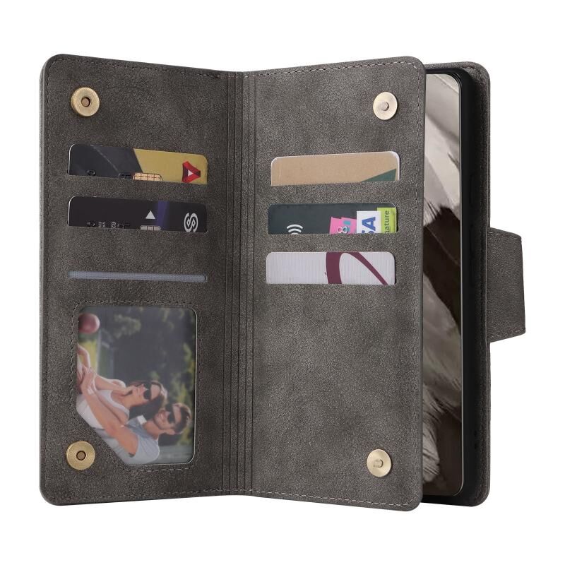 For Google Pixel 8 Rivet Buckle 9 Cards Three Fold Leather Phone Case(Grey)