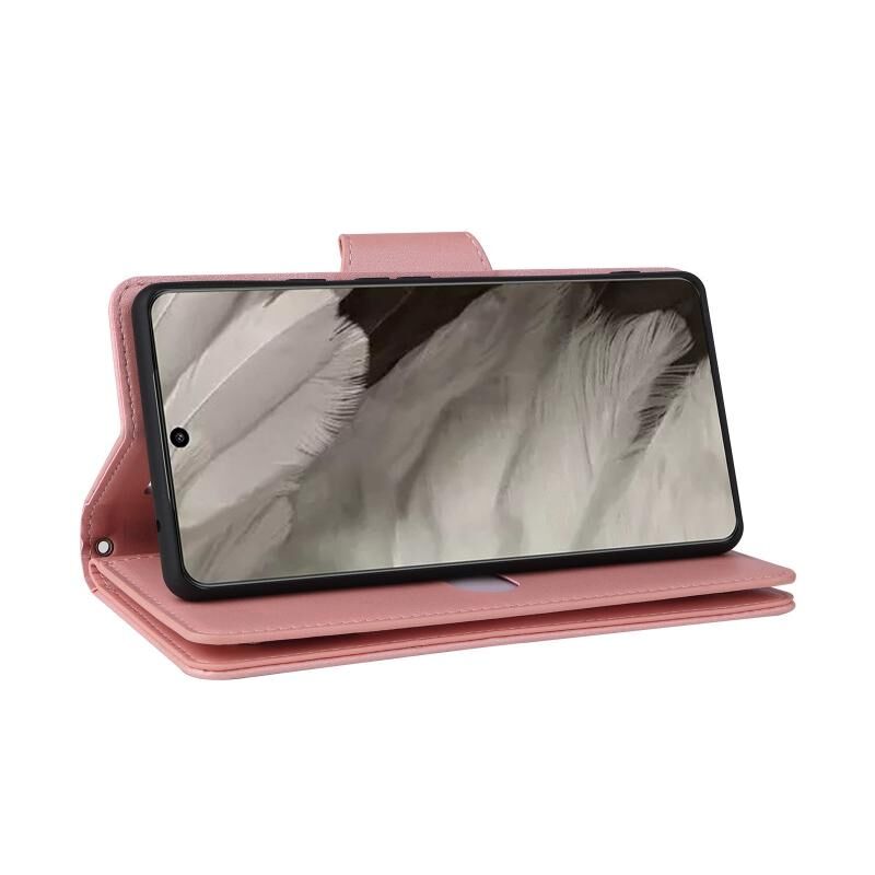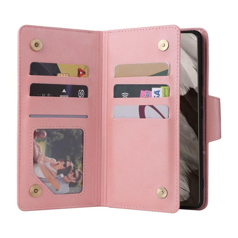 For Google Pixel 8 Rivet Buckle 9 Cards Three Fold Leather Phone Case(Rose Gold)