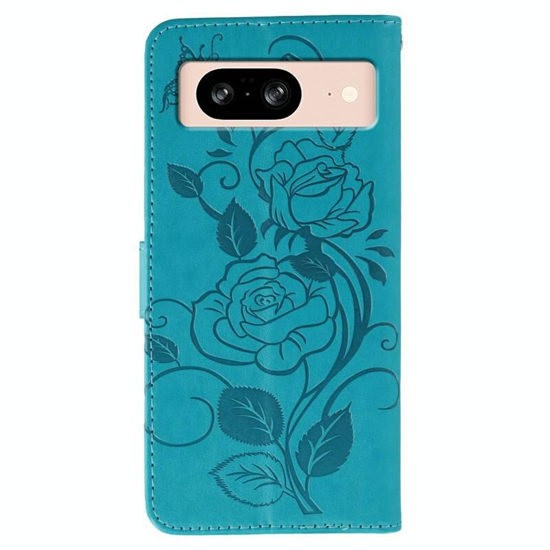For Google Pixel 8 Rose Butterfly Embossed Leather Phone Case(Blue)