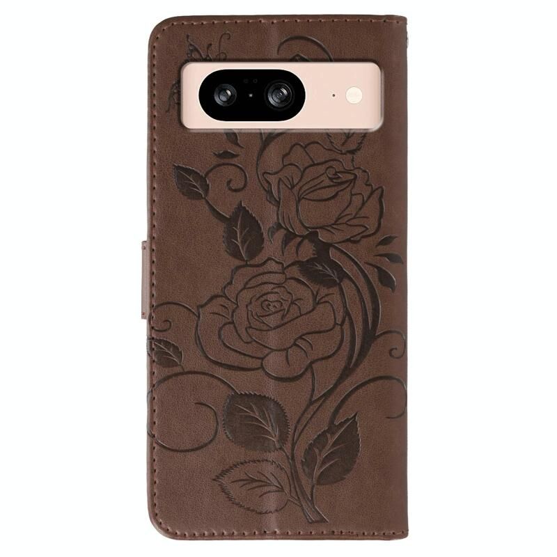 For Google Pixel 8 Rose Butterfly Embossed Leather Phone Case(Brown)