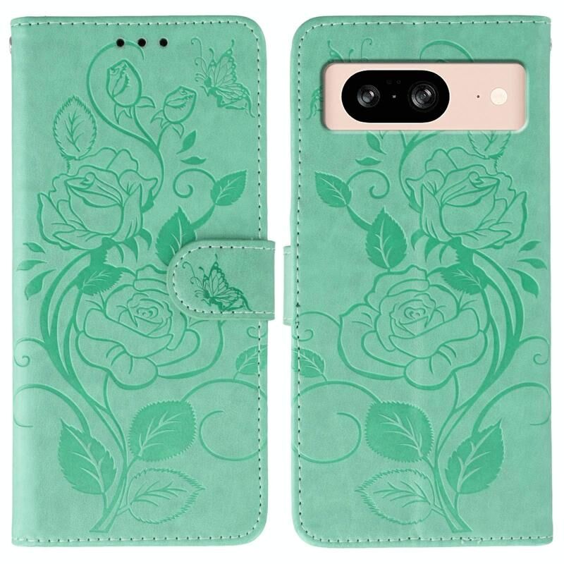 For Google Pixel 8 Rose Butterfly Embossed Leather Phone Case(Green)