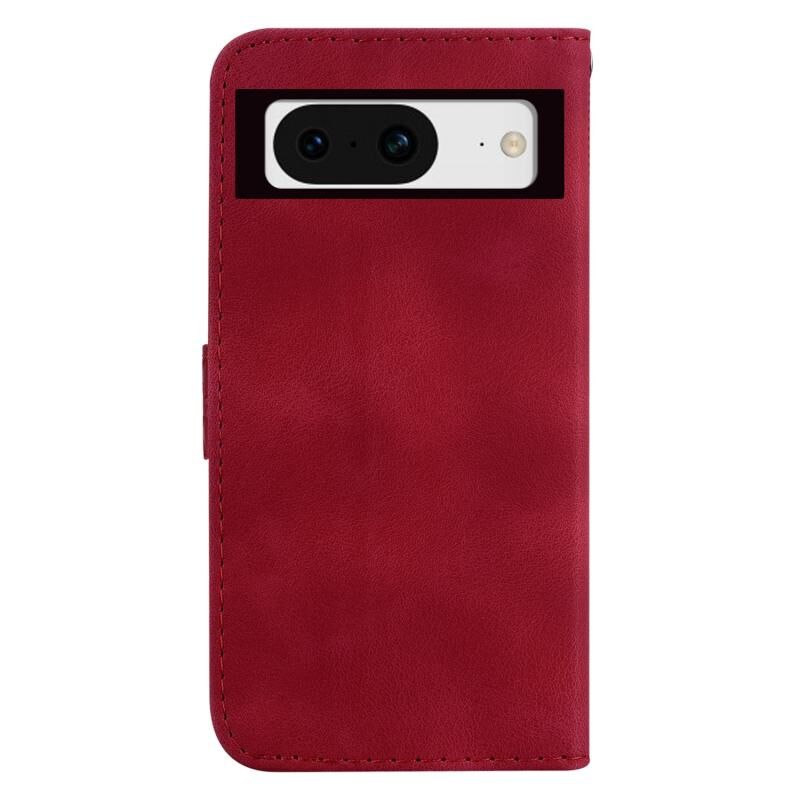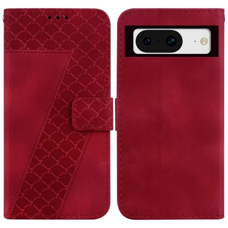 Θήκη τηλεφώνου από δέρμα με ανάγλυφο σχέδιο σε σχήμα επτά για Google Pixel 8 (Κόκκινο)