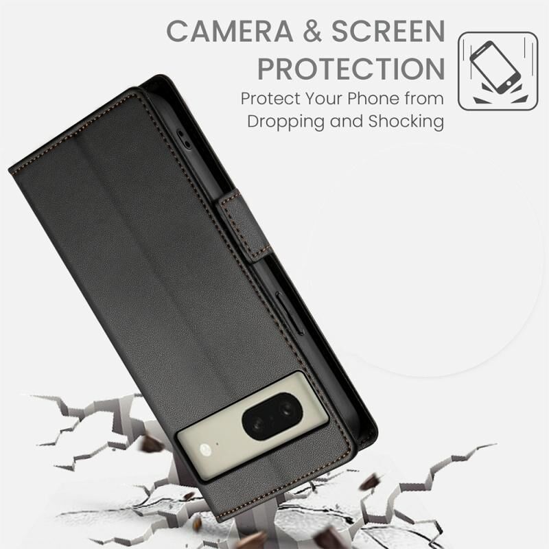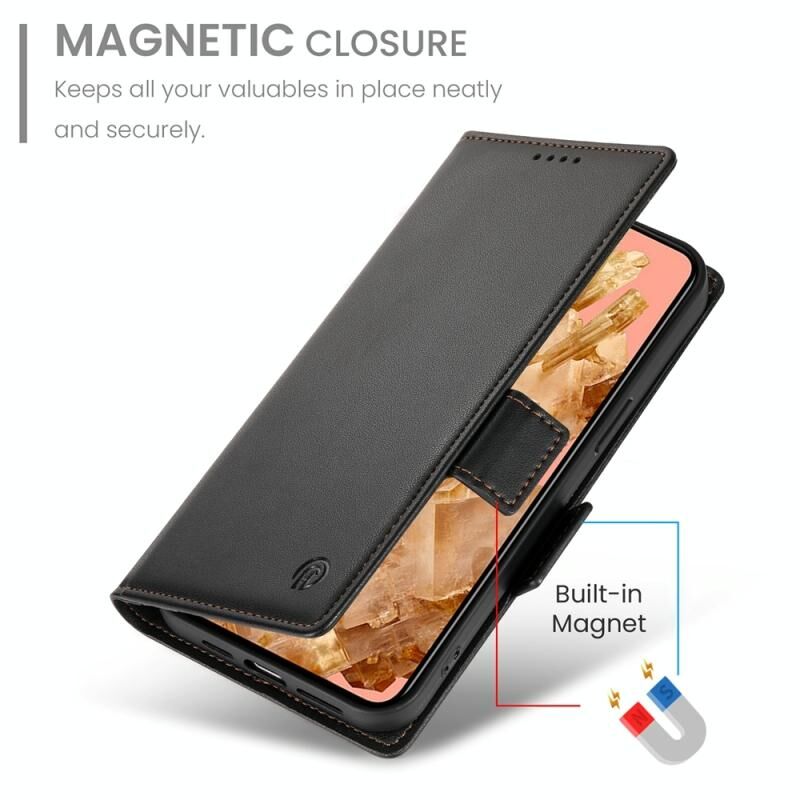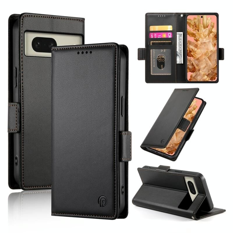 Για Google Pixel 8 Πλευρική πόρπη μαγνητική παγωμένη δερμάτινη θήκη τηλεφώνου (Μαύρο)