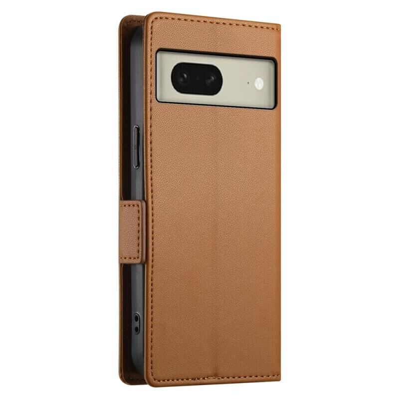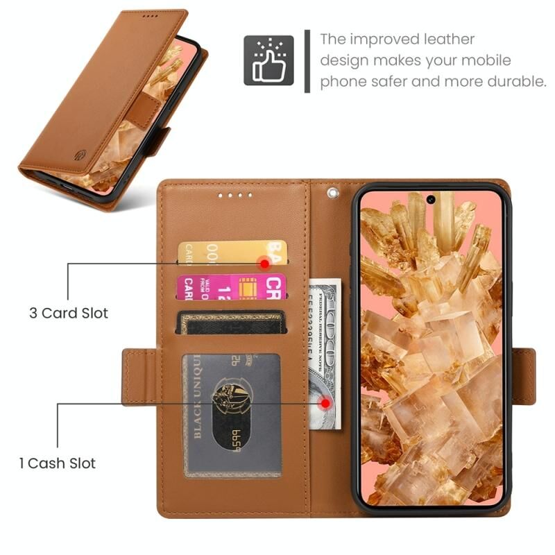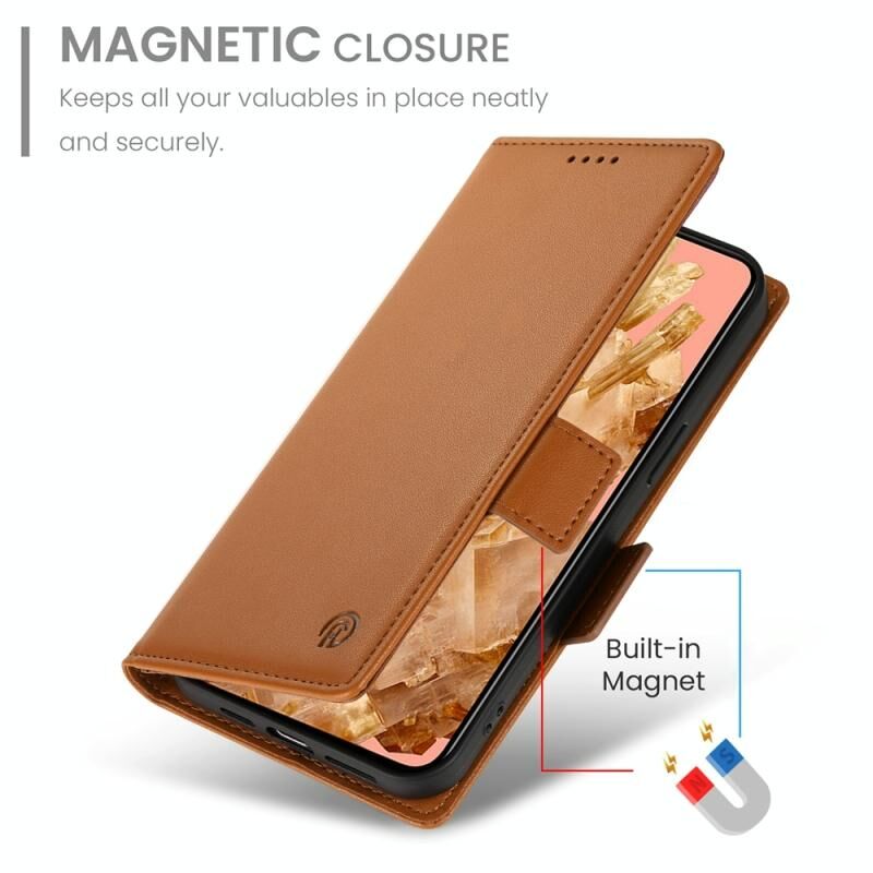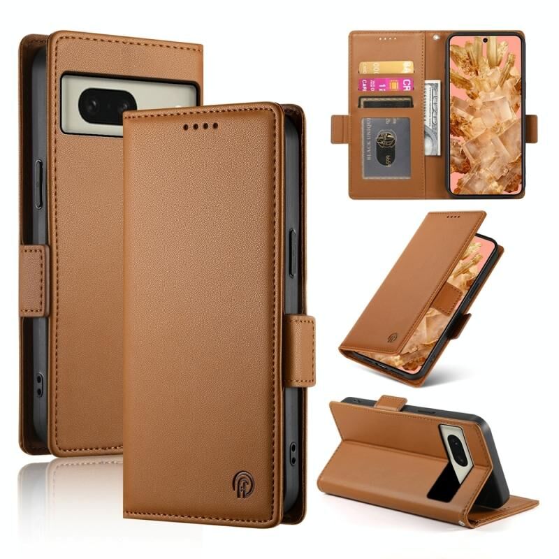 Για το Google Pixel 8 Πλευρική πόρπη μαγνητική θήκη τηλεφώνου από παγωμένο δέρμα (καφέ)