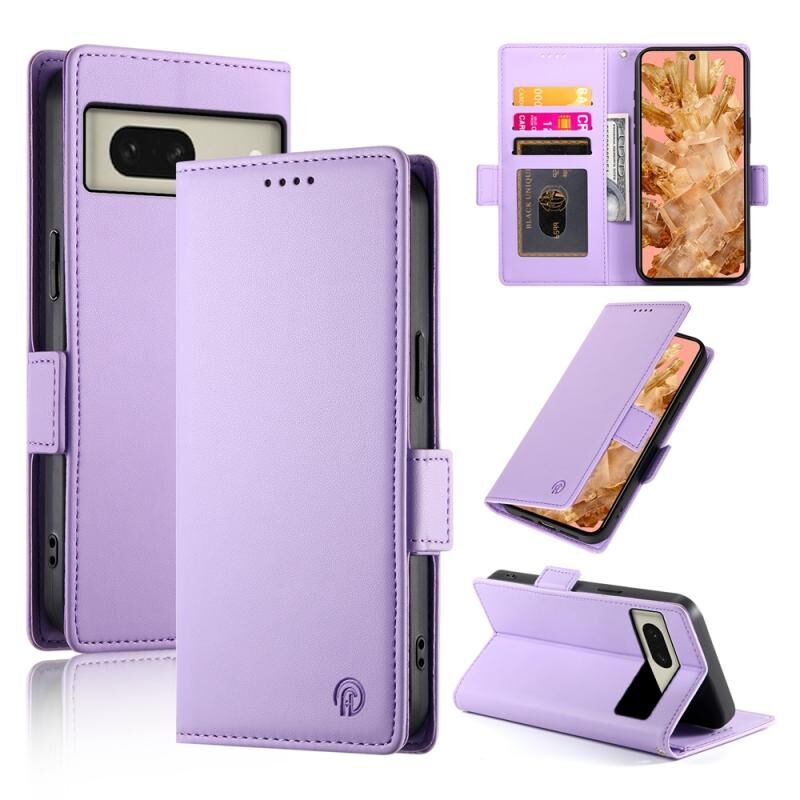 Για το Google Pixel 8 Πλευρική πόρπη μαγνητική θήκη τηλεφώνου από παγωμένο δέρμα (μωβ)