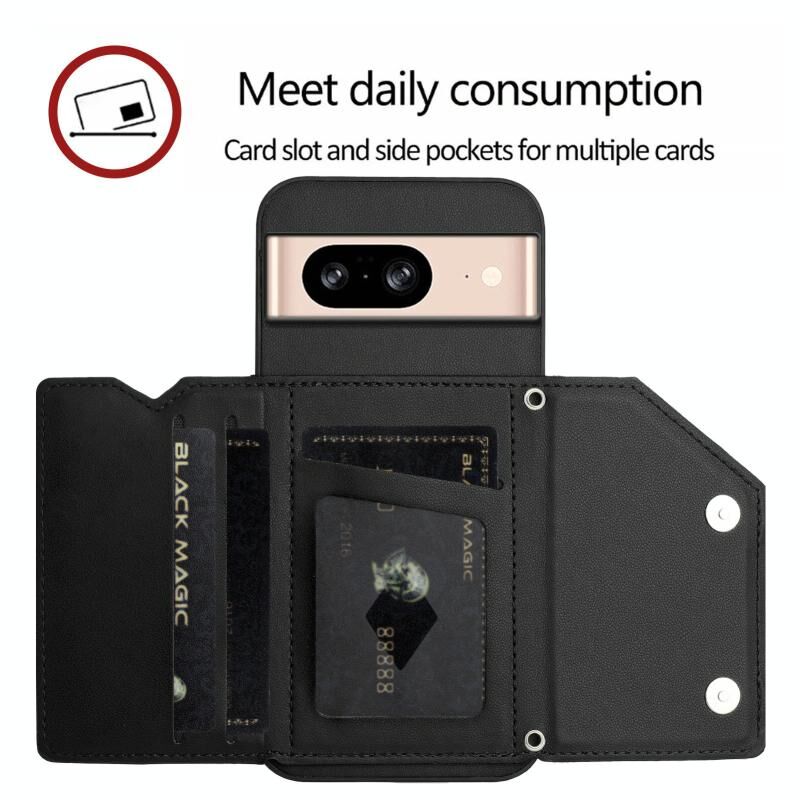 Για το Google Pixel 8 Skin Feel Τέσσερις υποδοχές καρτών υπόθεση τηλεφώνου με λουράκι καρπού (μαύρο)