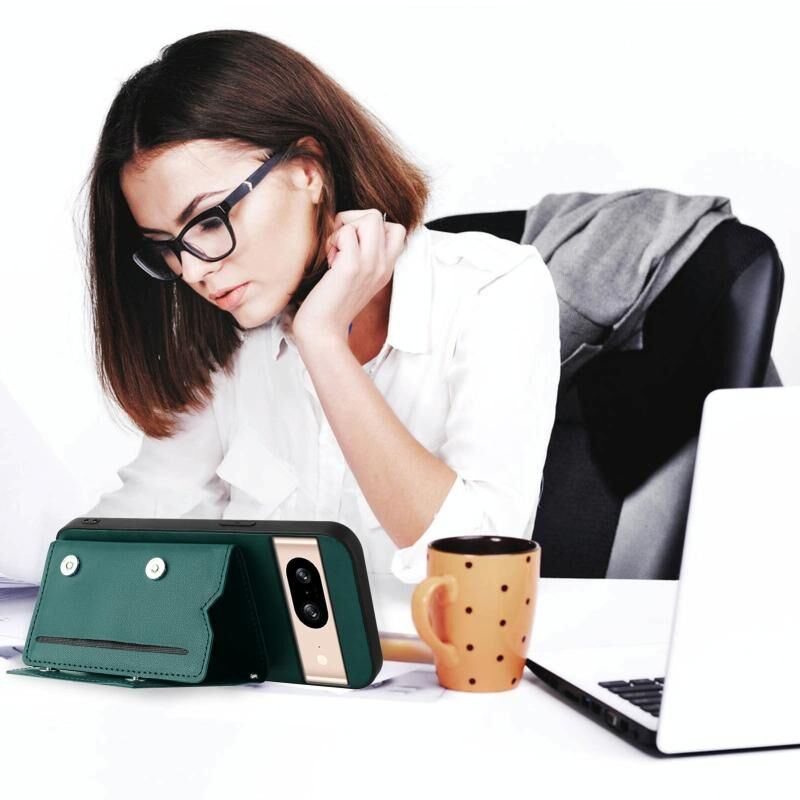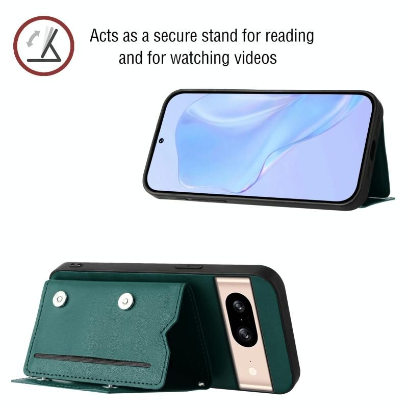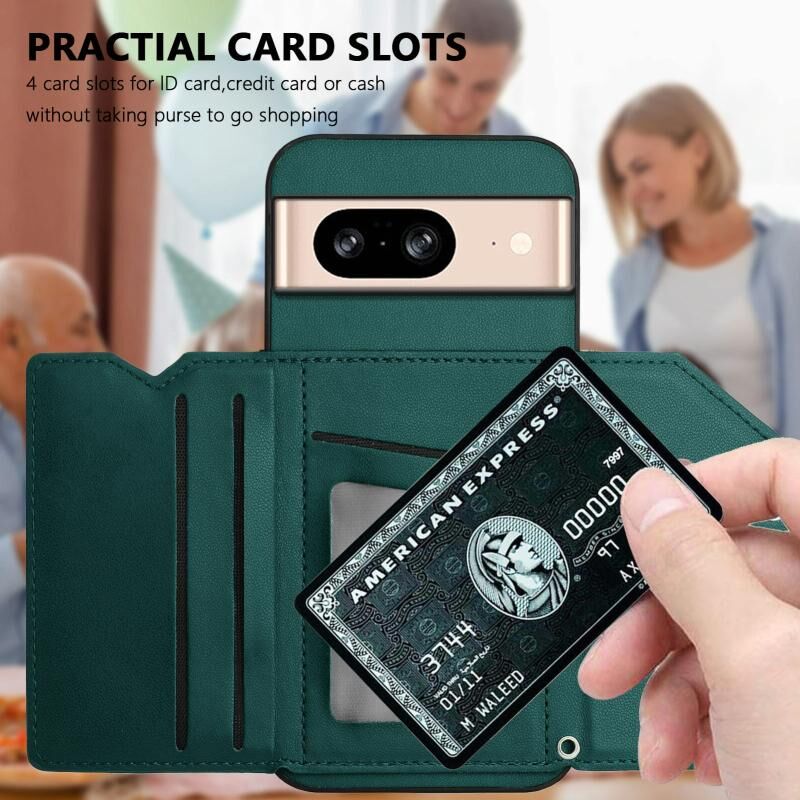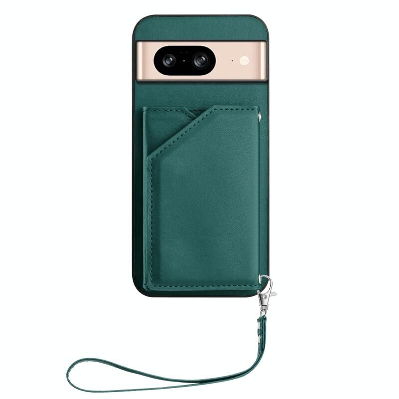 Για το Google Pixel 8 Skin Feel Τέσσερις υποδοχές καρτών υπόθεση τηλεφώνου με λουράκι καρπού (πράσινο)