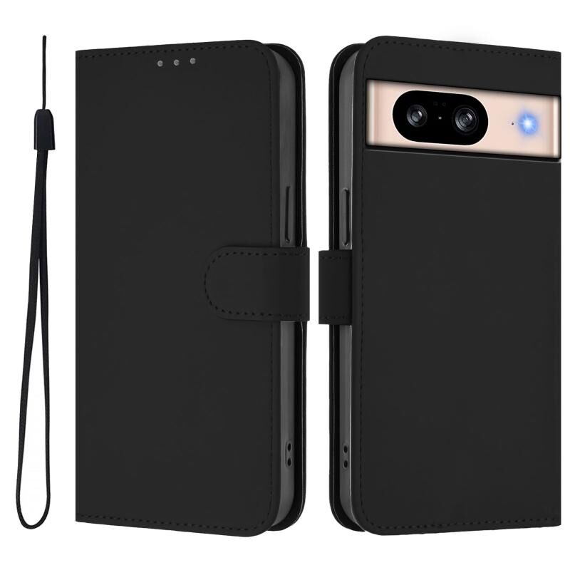 Για το Google Pixel 8 Skin Feel Solid Color Δερμάτινη θήκη τηλεφώνου με κορδόνι (Μαύρο)