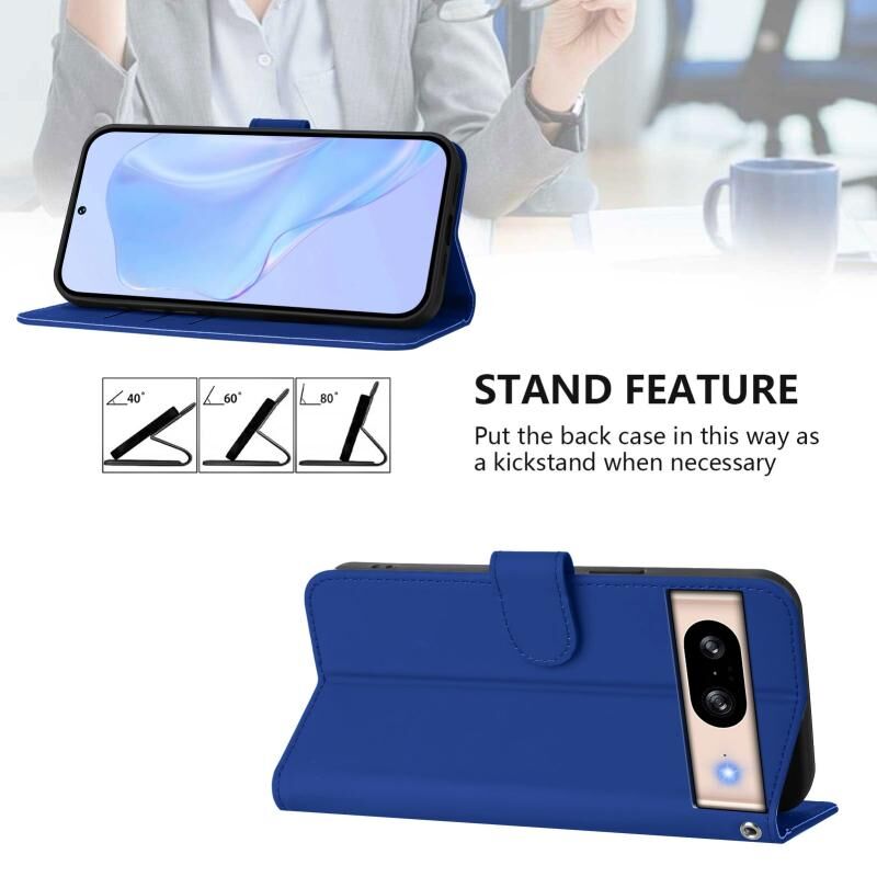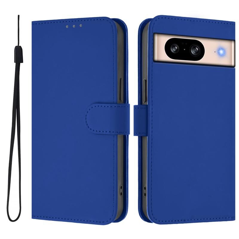 Για το Google Pixel 8 Skin Feel Solid Color Δερμάτινη θήκη τηλεφώνου με κορδόνι (σκούρο μπλε)
