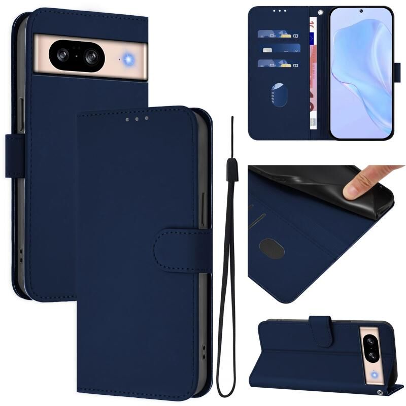 Για το Google Pixel 8 Skin Feel Solid Color Δερμάτινη θήκη τηλεφώνου με κορδόνι (Ναυτικό μπλε)