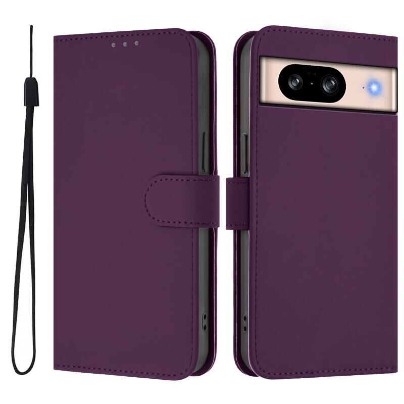 Για το Google Pixel 8 Skin Feel Solid Color Δερμάτινη θήκη τηλεφώνου με κορδόνι (Violet)