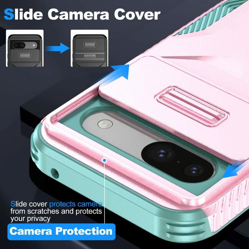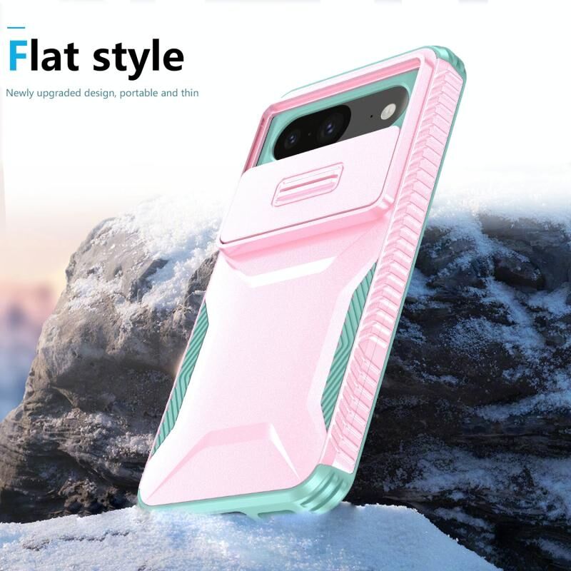 Για Google Pixel 8 Συρόμενη θήκη τηλεφώνου Camshield (ροζ + γκρι πράσινο)