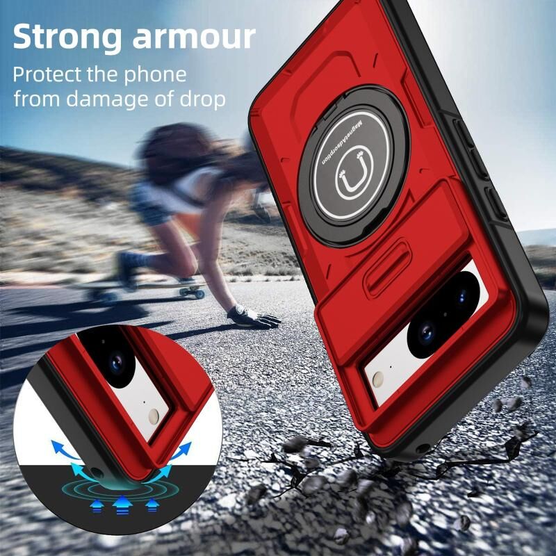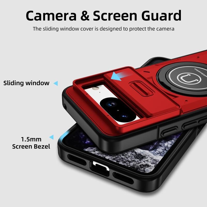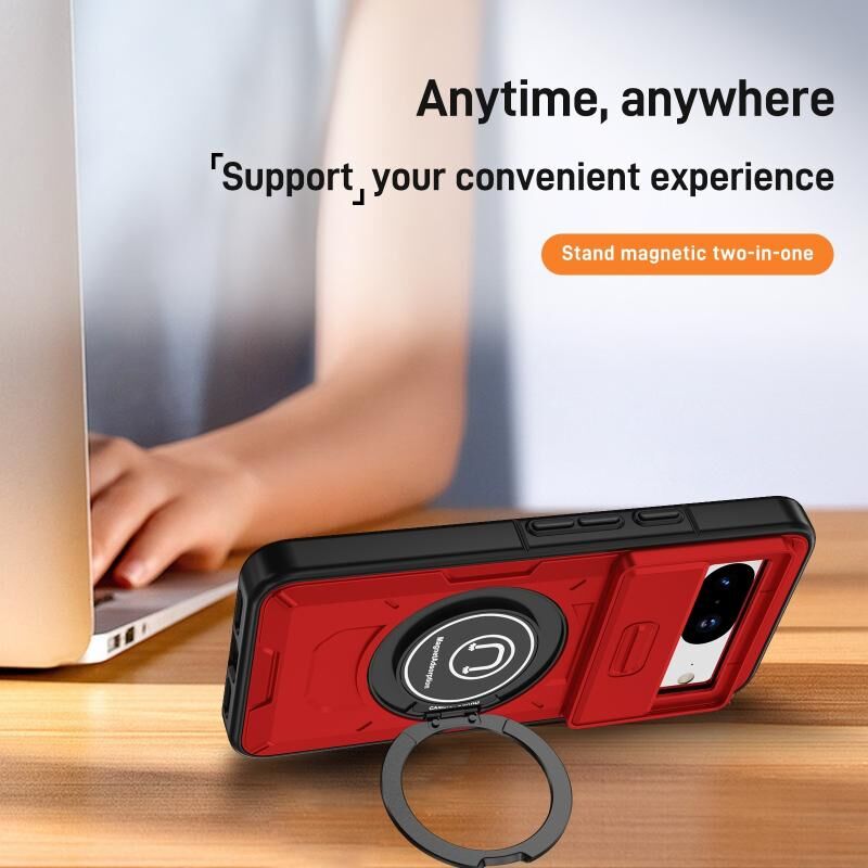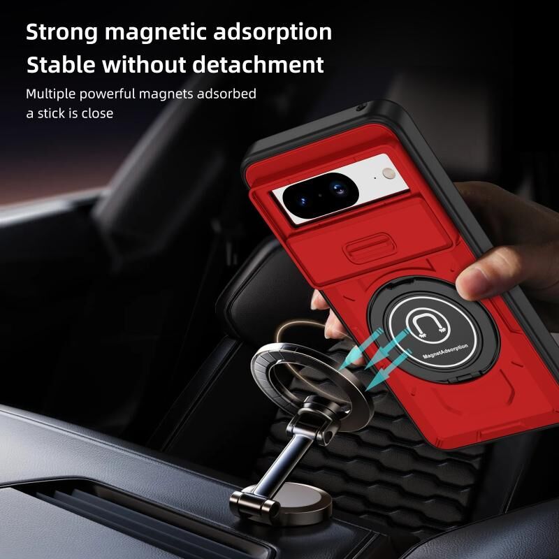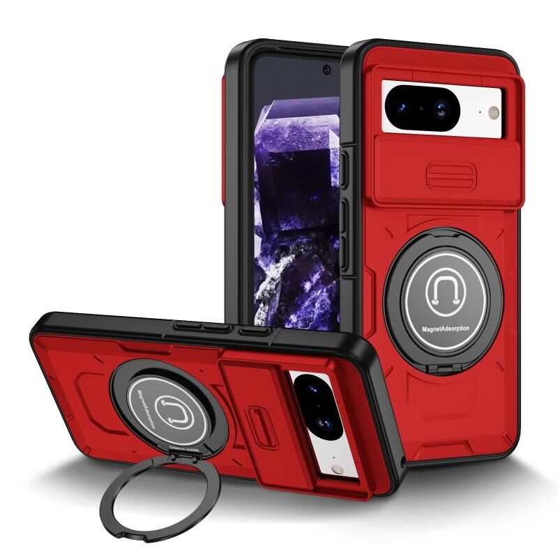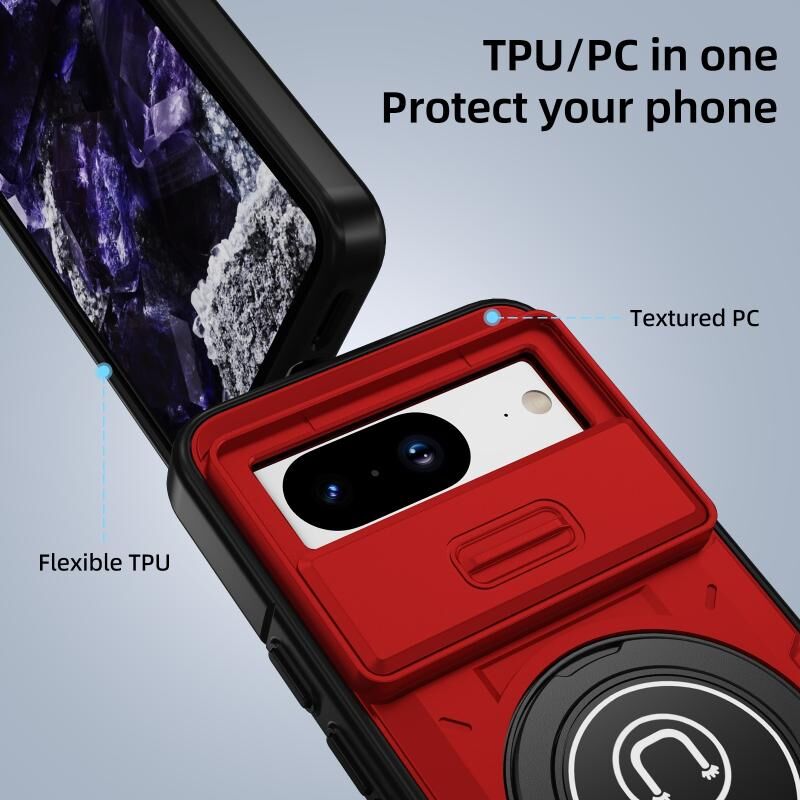 For Google Pixel 8 Sliding Camshield TPU Hybrid PC Magnetic Holder Phone Case(Red)