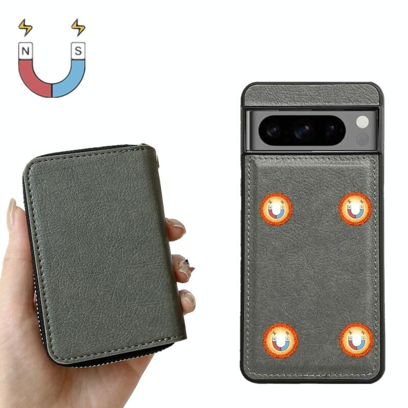 Για Google Pixel 8 Αμιγές χρώμα φερμουάρ 11-κάρτα υποδοχές τσάντα υπόθεση τηλεφώνου με κορδόνι (γκρι)