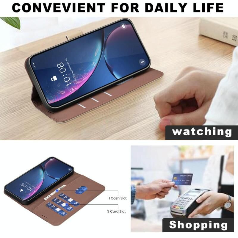1. PU Leather: The phone case is hand-made with selected PU leather and soft TPU inner shell, which brings a comfortable touch and protects your phone in all aspects.