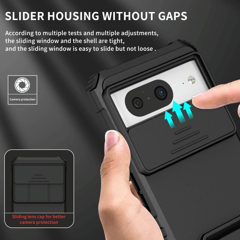 Για Google Pixel 8 Στερεοσκοπική θήκη τηλεφώνου με συρόμενη θήκη Camshield (Μαύρο)