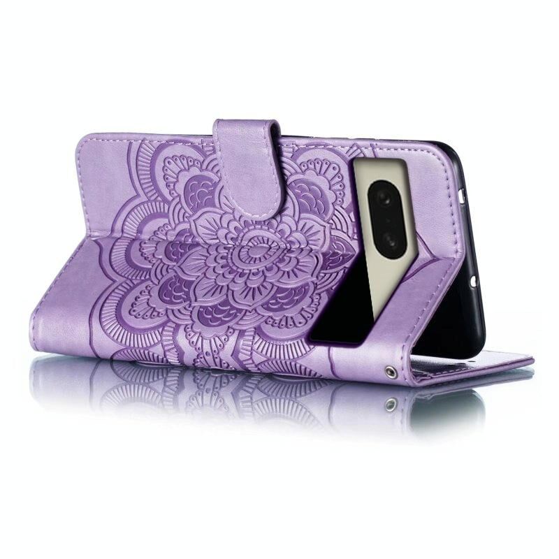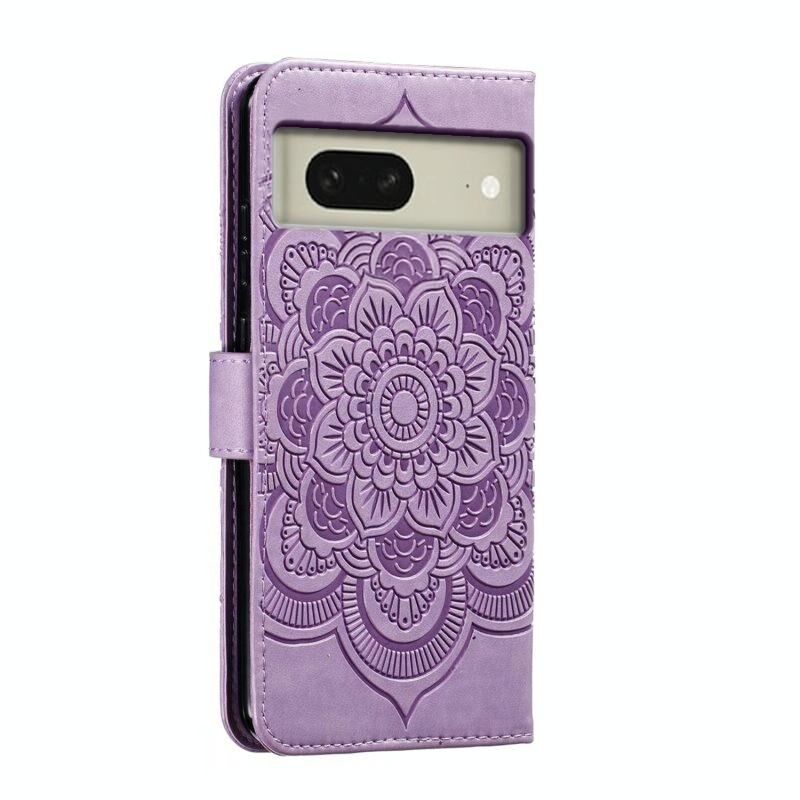 Για το Google Pixel 8 Sun Mandala ανάγλυφο μοτίβο τηλέφωνο δερμάτινη θήκη (μωβ)