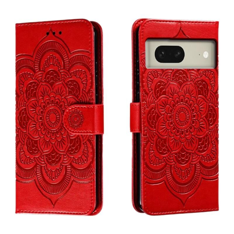 Για το Google Pixel 8 Sun Mandala ανάγλυφο μοτίβο τηλέφωνο δερμάτινη θήκη (κόκκινο)