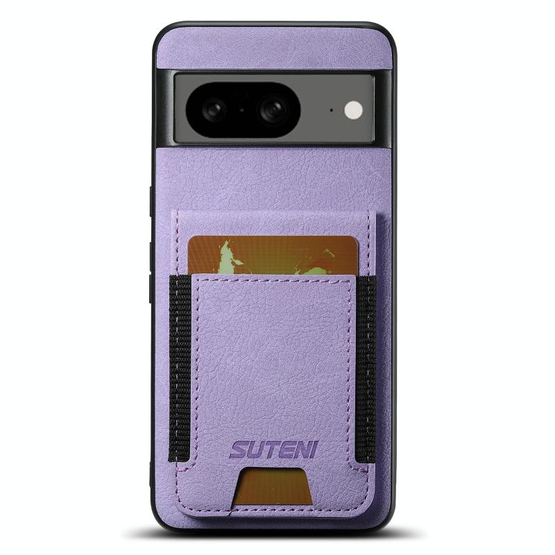 For Google Pixel 8 Suteni H03 Litchi Leather Card Bag Stand Back Phone Case(Purple) (Suteni)