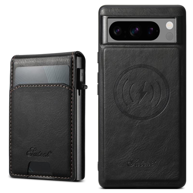 For Google Pixel 8 Suteni H19 Oil Wax 2-in-1 MagSafe Removable Card Box Back Phone Case(Black) (Suteni)
