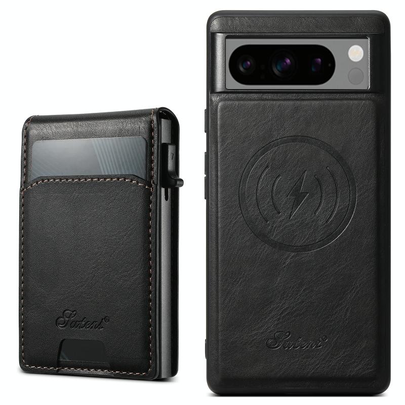 For Google Pixel 8 Suteni H19 Oil Wax 2-in-1 MagSafe Removable Card Box Back Phone Case(Brown) (Suteni)
