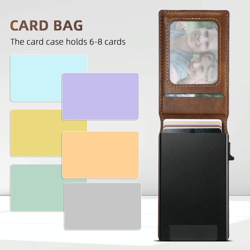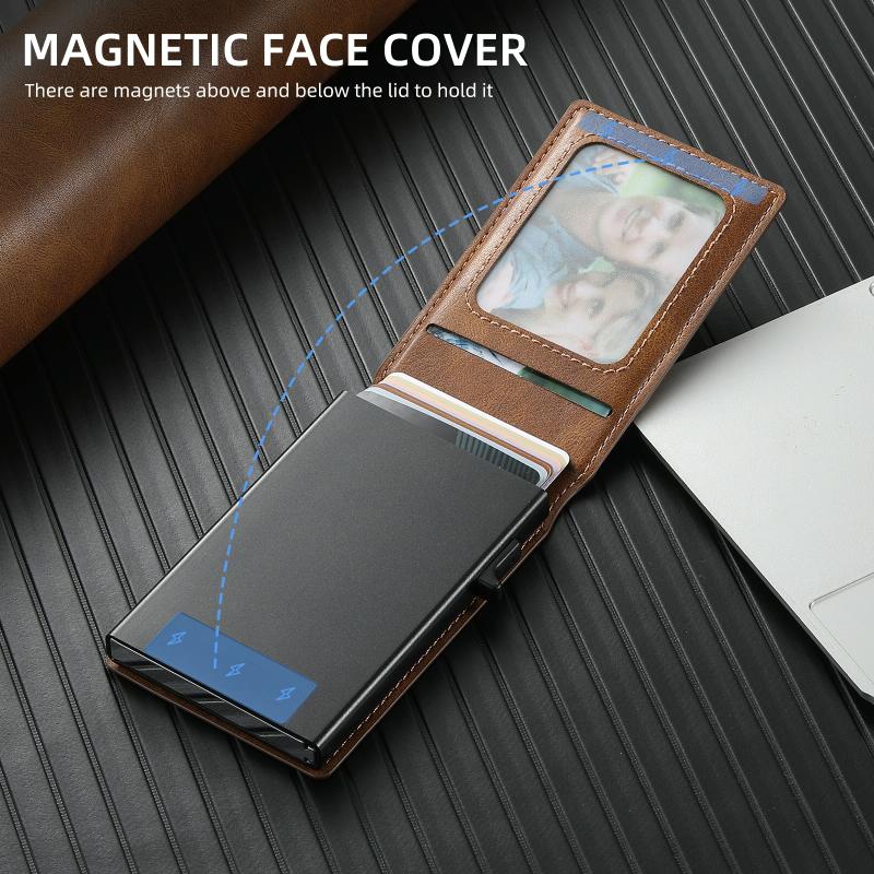 1. Material: PU leather +TPU+PC+ magnet + metal card box