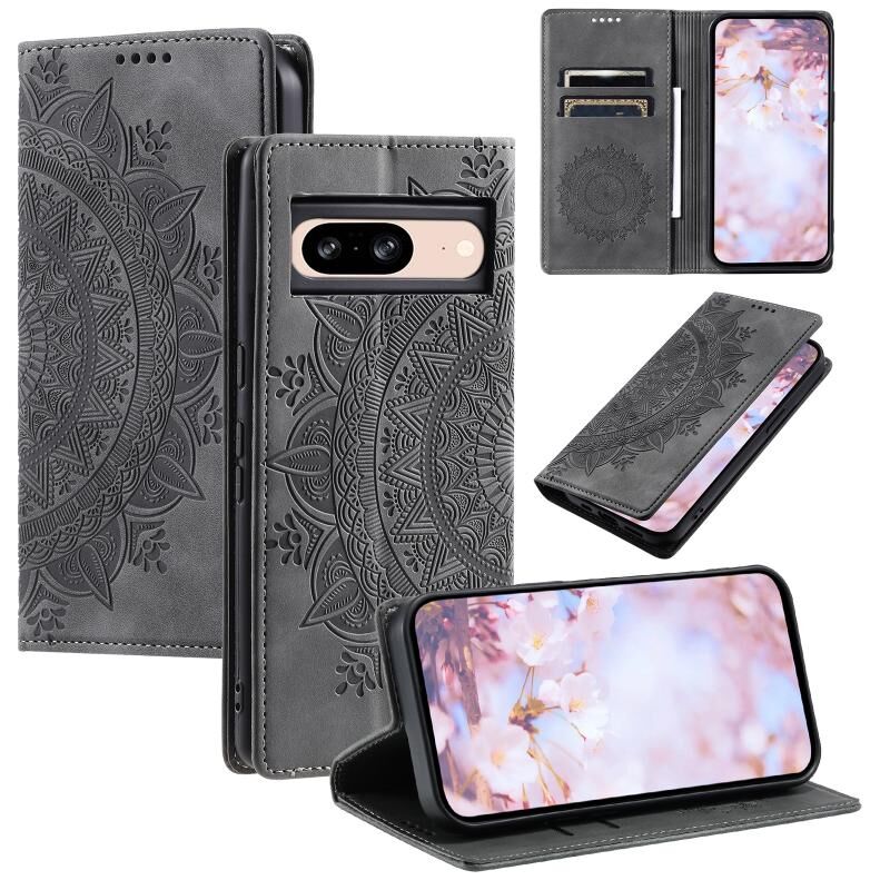 Για Google Pixel 8 Totem ανάγλυφη μαγνητική δερμάτινη θήκη τηλεφώνου (γκρι)
