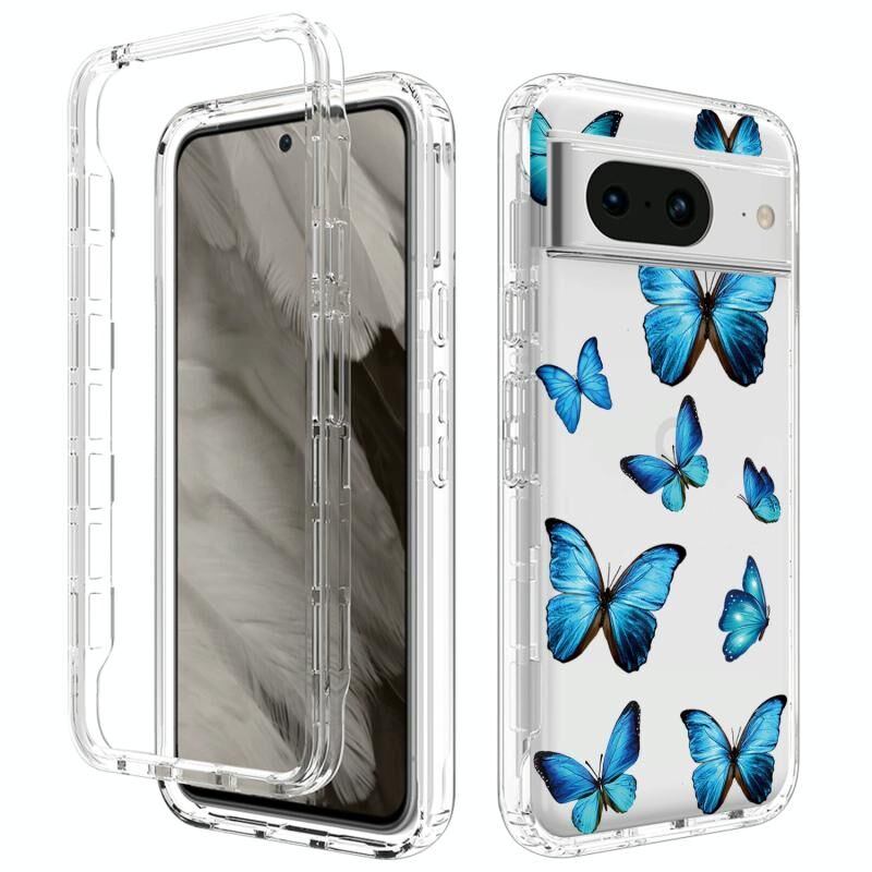 Θήκη τηλεφώνου Google Pixel 8 Διαφανής Βαμμένη (Μπλε Πεταλούδες)