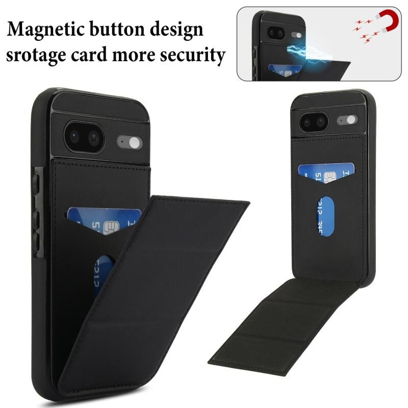 For Google Pixel 8 Tri-fold Holder Leather Phone Case with Card Slot(Black)