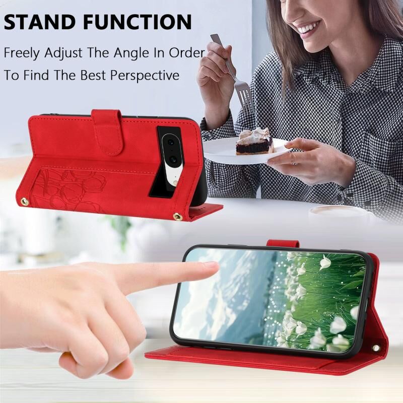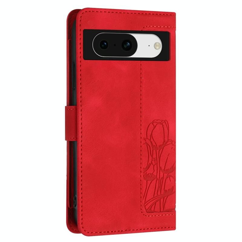 Θήκη τηλεφώνου Google Pixel 8 Tulips Embossed Leather με Λουρί (Ροζ)