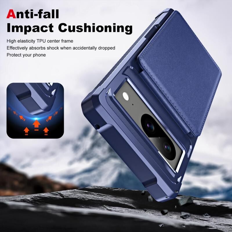 Για το Google Pixel 8 Κάθετη Flip κάρτα τσάντα κάτοχος δερμάτινη θήκη τηλεφώνου (σκούρο μπλε)