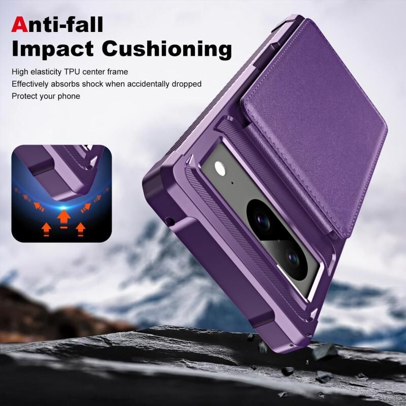Για το Google Pixel 8 Κάθετη Flip κάρτα τσάντα κάτοχος δερμάτινη θήκη τηλεφώνου (μωβ)