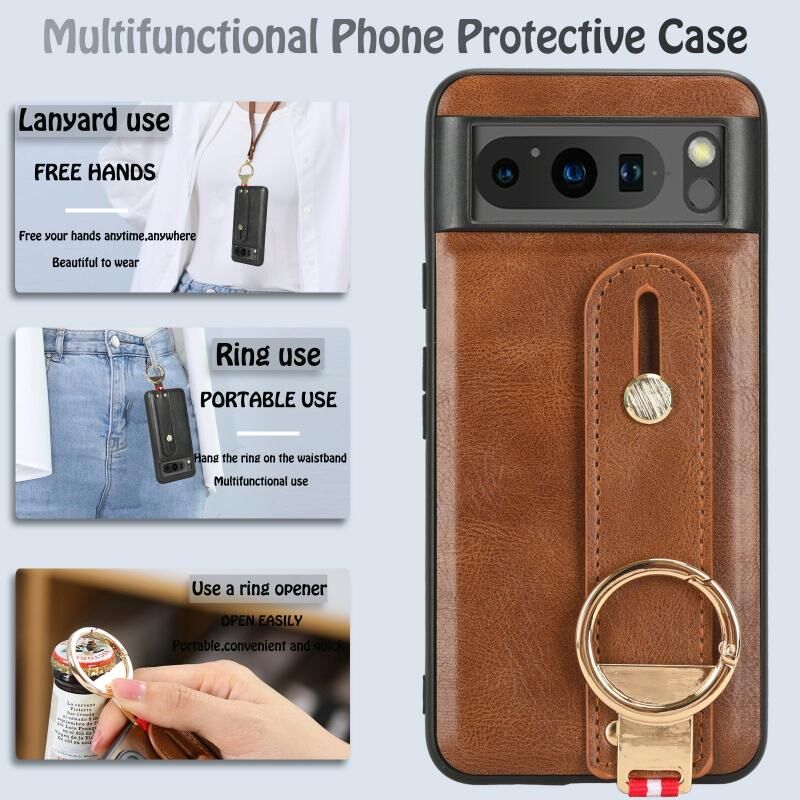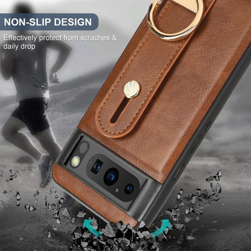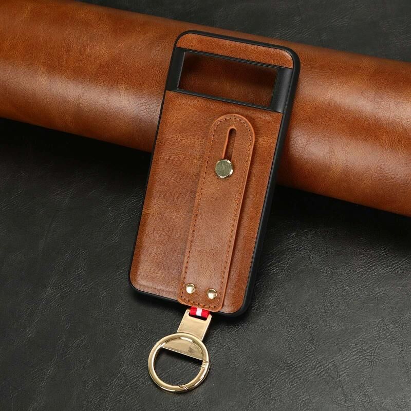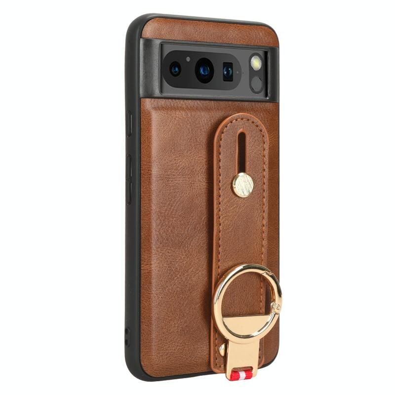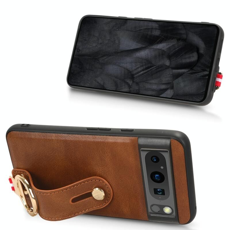 Για Google Pixel 8 Wristband δέρμα πίσω θήκη τηλεφώνου (καφέ)