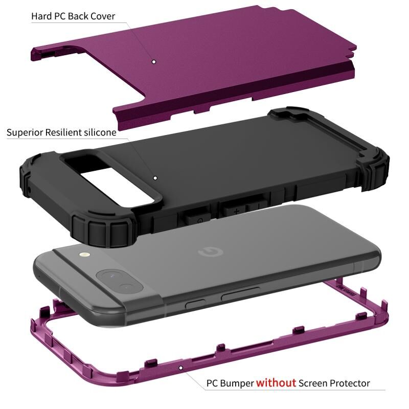 Για το Google Pixel 8a 3 σε 1 σιλικόνη υβριδικό PC Shockproof τηλέφωνο υπόθεση (σκούρο μωβ)