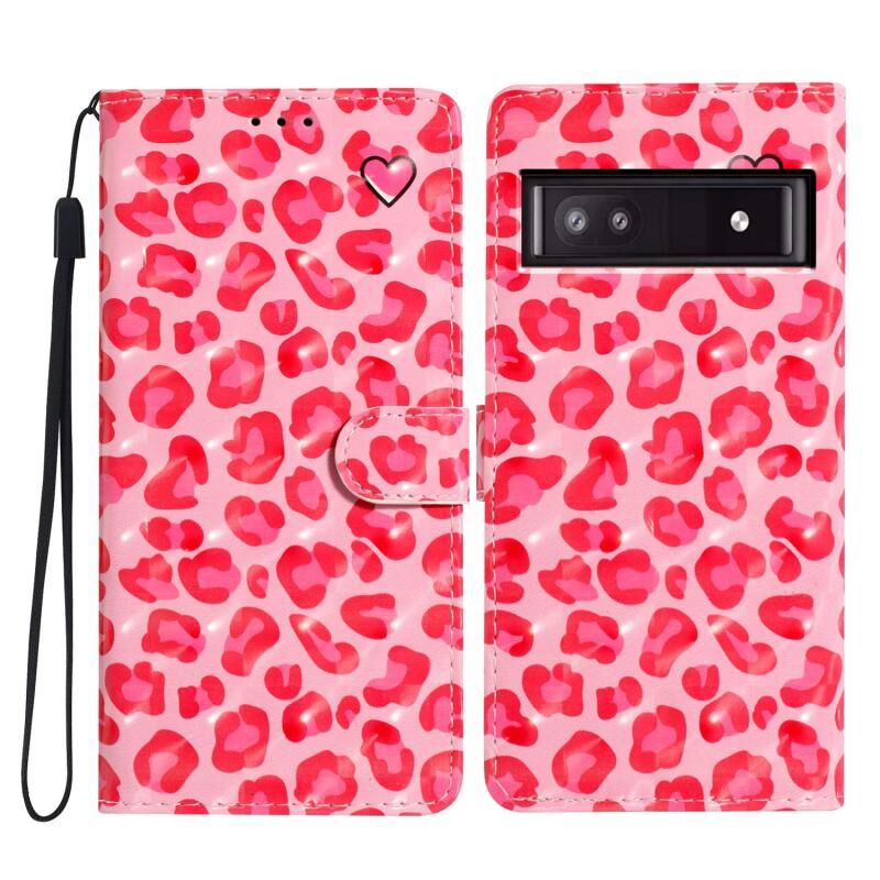 For Google Pixel 8A 3D Pattern Leather Phone Case(Pink Leopard Print)