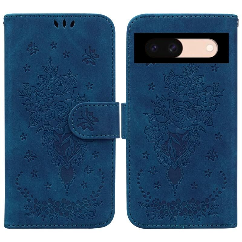 Για το Google Pixel 8a Πεταλούδα Rose ανάγλυφη δερμάτινη θήκη τηλεφώνου (μπλε)