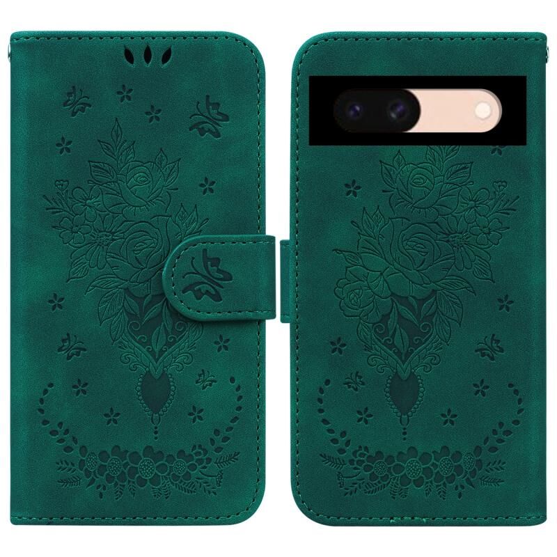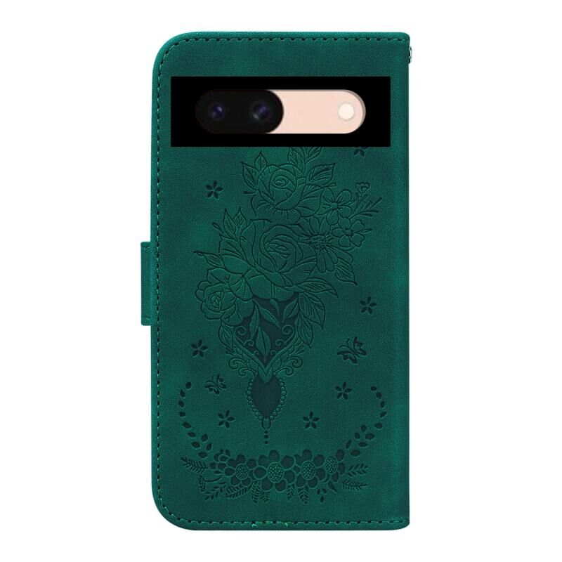Για το Google Pixel 8a Πεταλούδα Rose ανάγλυφη δερμάτινη θήκη τηλεφώνου (πράσινο)