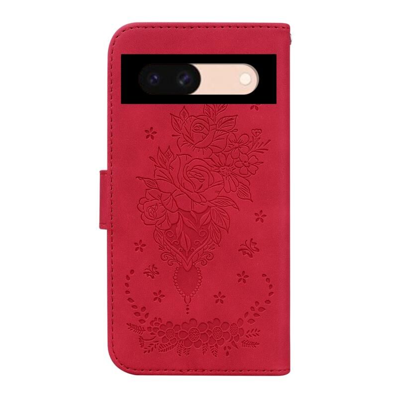 Για το Google Pixel 8a Πεταλούδα Rose ανάγλυφη δερμάτινη θήκη τηλεφώνου (κόκκινο)