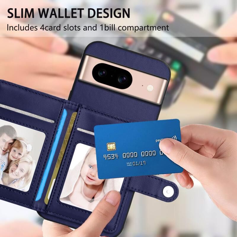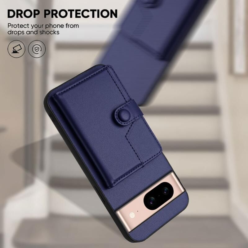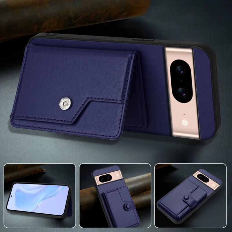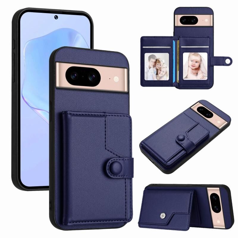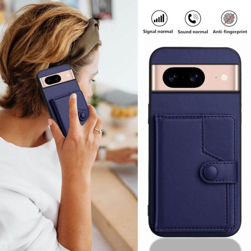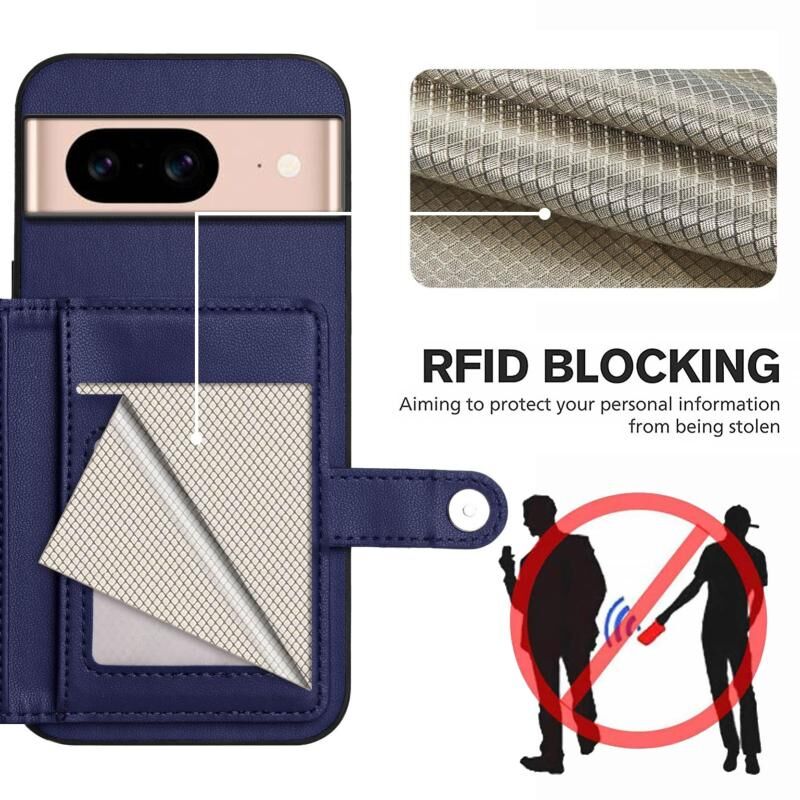 For Google Pixel 8a Button Card Bag RFID Anti-theft Phone Case(Blue)