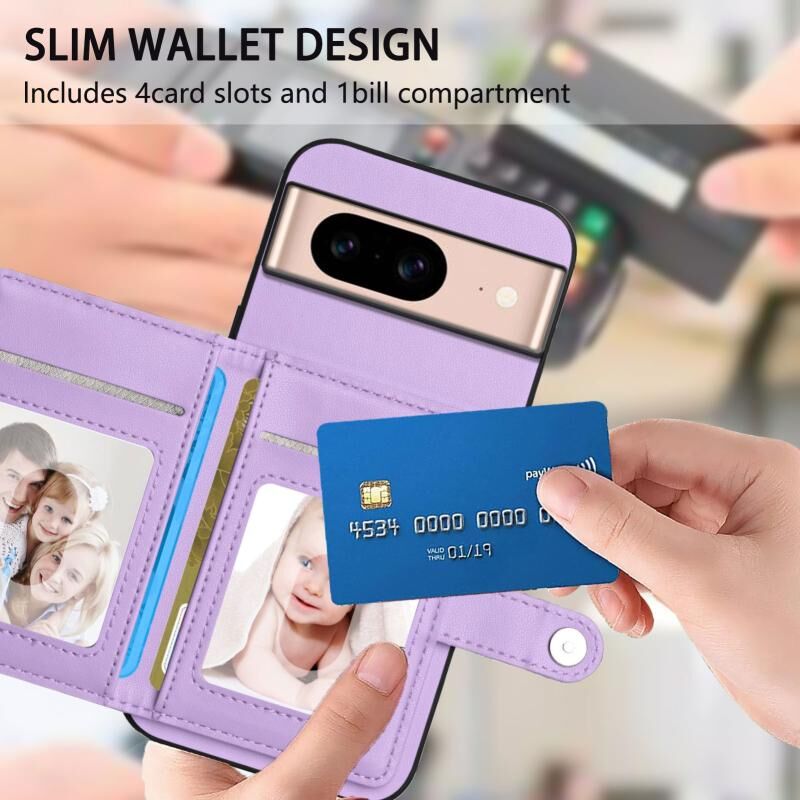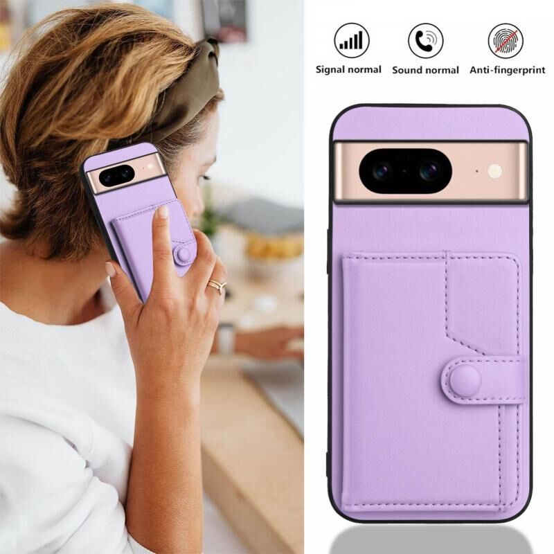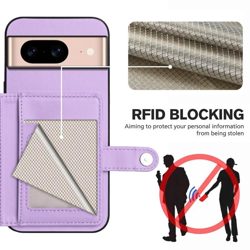 For Google Pixel 8a Button Card Bag RFID Anti-theft Phone Case(Purple)