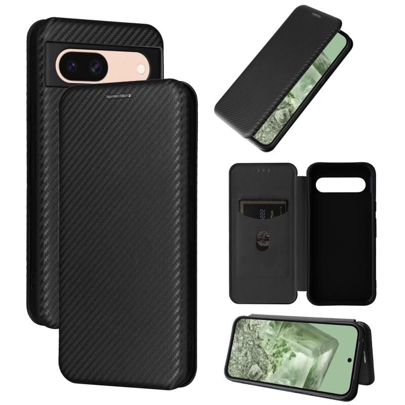 For Google Pixel 8a Carbon Fiber Texture Flip Leather Phone Case(Black)