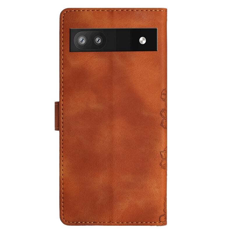 For Google Pixel 8a Cherry Blossom Butterfly Skin Feel Embossed PU Phone Case(Brown)