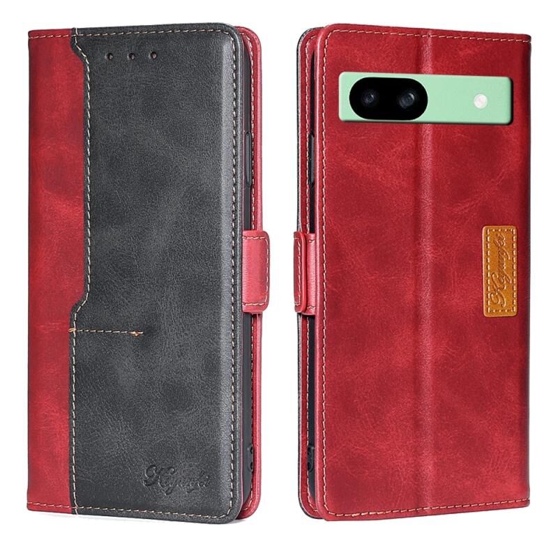 Για το Google Pixel 8a Αντίθετο χρώμα πλευρά πόρπη δερμάτινη θήκη τηλεφώνου (κόκκινο + μαύρο)