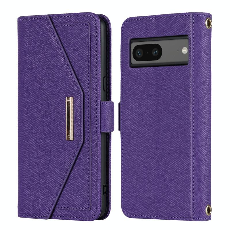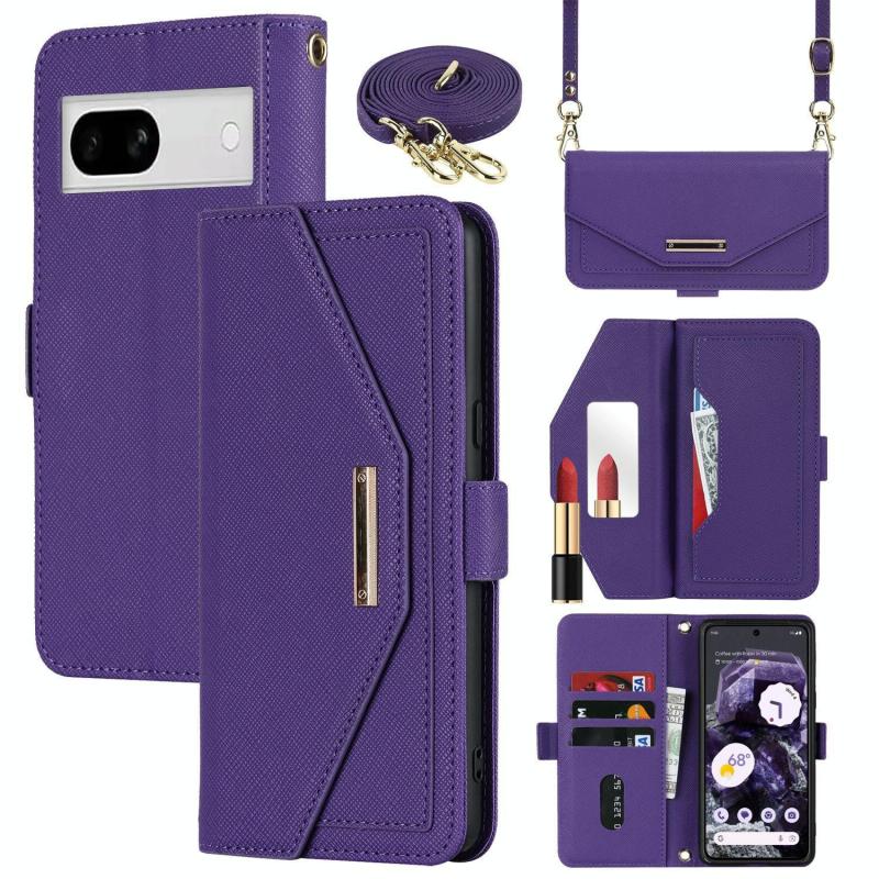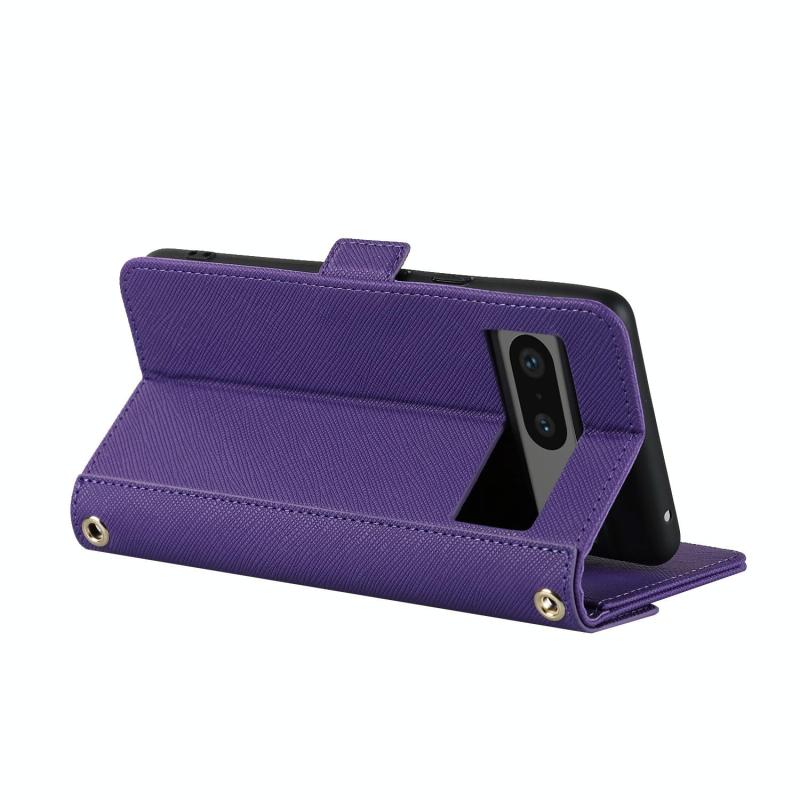 For Google Pixel 8a Cross Texture Crossbody Lanyard Leather Phone Case(Purple)