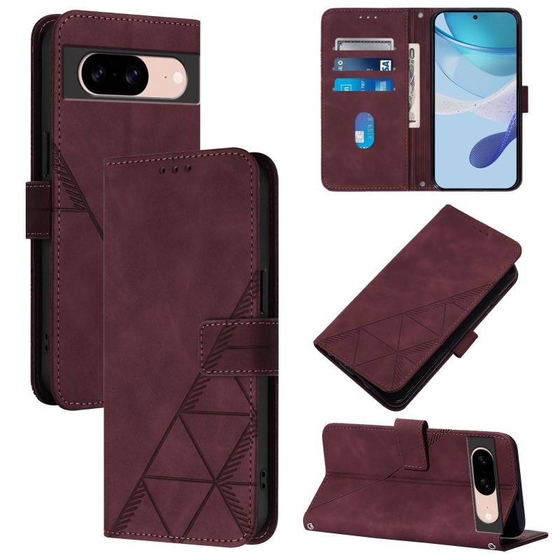 For Google Pixel 8a Crossbody 3D Embossed Flip Leather Phone Case(Wine Red)