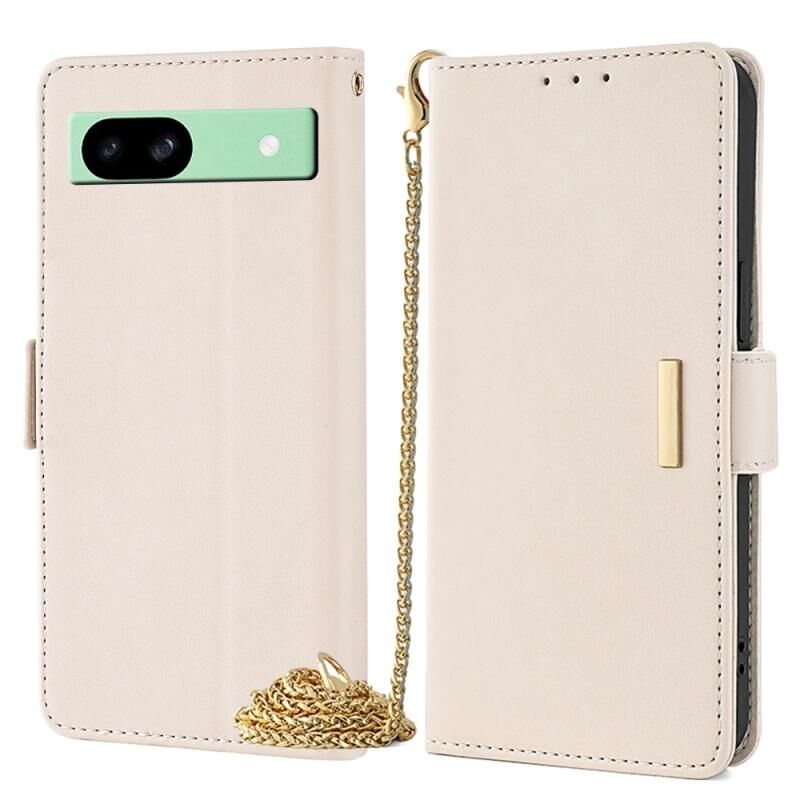 Για το Google Pixel 8a Crossbody Αλυσίδα δερμάτινη θήκη τηλεφώνου (λευκό)